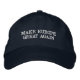 This eye catching hat features a play on the popular Trump slogan, but this time the message is to "Make Europe Great Again". This design is on a default navy blue background. These hats are customizable, you can edit the text and color if you wish. Just hit the Personalize button to make it yours. You can also add custom embroidery to the back of the hat if desired. Makes a great item for lovers of Europe, politics, freedom, veterans, military, and gifts.