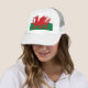 Um boné de beisebol com uma imagem da bandeira de Galês indicada claramente.
