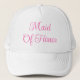Boné de beisebol estilo caminhão personalizado na cor branca impresso com Maid Of Honor em texto tipográfico rosa e design gráfico digital pela TheFabricSeal na loja de impressão sob demanda no Zazzle.com #ZazzleMade https://www.zazzle.com/store/thefabricseal TheFabricSeal Original.