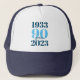 Um chapéu de baseball ousado e marcante de 90 (ou qualquer idade). Este boné especial consiste no nascimento e data de aniversário na tipografia azul-escura - com a idade realçada em azul claro.