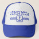 Design de boné de bola azul e branca impresso com logotipo azul.