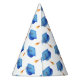 Chapéu de festa de formatura simples e bonito com um padrão de bonés de formatura azuis com uma fita de ouro. Excelente para a sua festa de formatura! Ilustrada e projetada por Patricia Alvarez.