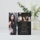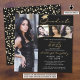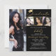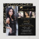 Convite para festas de formatura preto, dourado e branco moderno, com 4 fotos e uma tipografia de guiões elegantes, escrita à mão, destacada com um falso boné de formatura de folha metálica de ouro. ASSISTÊNCIA: Para obter ajuda sobre modificação/personalização do design, transferência do design para outro produto ou sobre como coordenar itens, entre em contato com o designer ANTES DE PEDIR, via Chat Zazzle ou makeitaboutyoustore@gmail.com.