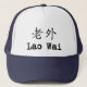 Este boné lê o Lao Wai ou o estrangeiro no chinês. Um chapéu do divertimento para viajar em China ou apenas imprimir seus amigos com um boné chinês.