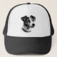 Desenho preto e branco de um Jack Russell Terrier. Olhos grandes, nariz molhado e ouvidos meio suspensos. Assim como você esperaria que um amiguinho fofo olhasse.
