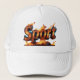 A design de uma palavra "esporte" Escrito sob a forma de fogo, e os incêndios saem dela, design de chapéu