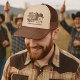 Esses divertidos chapéus de caminhoneiro permitirão que você celebre o noivo com estilo! O charmoso design temático ocidental apresenta um gráfico de arte com palavras em xilogravura com uma bota de cowboy, chapéu de cowboy e um laço em forma de coração. A letra vintage diz: Ele Está Fazendo o Nó! Há espaço para o nome dele e a data do evento.