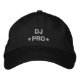 Um design de bordado divertido para um amante de música ou jóquei em disco. O 'DJ PRO' é uma ideia de presente de excelente para qualquer homem que ama música ou ganha uma para si mesmo e deixe o mundo saber sobre seus talentos de DJ! Filete de cinza pálido em um boné preto, mas ambos totalmente personalizáveis — escolha sua própria combinação de cores na interface fácil de usar do cliente Zazzle.
