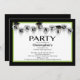 Parta seu direito do evento com nossos balões pretos na moda & à moda com o convite da graduação dos bonés de formatura ajustado em um fundo preto & branco com um quadro do verde limão. Aperfeiçoe o convite da graduação para uma conclusão do ensino secundário ou uns formandos. Apenas encha dentro sua informação adicionam sua foto e você é todo ajusta-se para ir. Visite nossa loja em www.celebrateitgraduations.com para uma grande variedade de convites da graduação! graphics©delightful-doodles