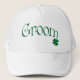 Este boné de bola "Groom" verde e branco da floresta tem um trevo de 4 folhas com sorte.