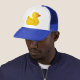 Simples ilustração gráfica de um bonitinho pato amarelo de desenho em água azul sobre o chapéu. Este pato é a Imagem disponível em vários presentes e produtos. Personalize e escolha a sua própria cor de fundo do pato ou adicione texto, se necessário.