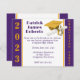 Convite para graduação, tema Boné e Diploma, com ano de aula e "festa de formatura" em Dourado e roxo. O verso do convite inclui o nome do formando. O cartão pode ser personalizado com suas próprias imagens, trabalho de arte, etc.