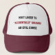 Este chapéu engraçado diz "É mais provável que acidentalmente solte uma maldição de mau" na frente, e "Desculpe, eu disse acidentalmente?" nas costas. É perfeito para arqueólogos, historiadores, aventureiros, ou simplesmente amigos com paixão pelo horror... e um lado negro oculto que adoraria soltar mau antigas sobre seus inimigos, é claro. Ou simplesmente para ver o que aconteceria. Você sabe que está se perguntando sobre isso. Então, se você é um egitologista que acabou de abrir um sarcófago negro, ou um aficionado trekking que rotineiramente se perde em florestas infestadas de bruxas escuras, ou um amante de antiguidade que iria comprar um livro antigo, parecido com pele humana, em um compro de livros empoeirados escuros.. pelo menos avise seus amigos com este chapéu!