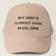 Este chapéu engraçado diz "Mais propenso a desencadear acidentalmente uma maldição de mau" na frente, em cores na moda preto e escuro de cacau. É perfeito para arqueólogos, historiadores, aventureiros, ou simplesmente amigos com paixão pelo horror... e um lado negro oculto que adoraria soltar mau antigas sobre seus inimigos, é claro. Ou simplesmente para ver o que aconteceria. Você sabe que está se perguntando sobre isso. Então, se você é um egitologista que acabou de abrir um sarcófago negro, ou um aficionado trekking que rotineiramente se perde em florestas infestadas de bruxas escuras, ou um amante de antiguidade que iria comprar um livro antigo, parecido com pele humana, em um compro de livros empoeirados escuros.. pelo menos avise seus amigos com este chapéu!
