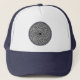 Ofereça ao seu amigo este legal chapéu de caminhoneiro com uma tentativa liberal de uma mandala geométrica. A mandala é um símbolo espiritual usado tanto no hinduísmo quanto no budismo. Normalmente é empregado para focar a atenção do meditador. Esta mandala é puramente feita para estética visual Hoje você vê muitas mandala com elementos design como pétalas de flores em formações concêntricas radiando para fora. A mandala básica, porém, tem um quadrado proeminente que contém um círculo como ponto focal. Minha mandala é a versão concêntrica geométrica porque eu gosto mais desse estilo. O design simples e limpo, que fica bom em preto e branco, mas também pode ser colorido.