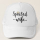 Esposa mimada em letra cursiva negra. A letra O em mimado é tocada com uma coroa de ouro de dois tons.