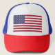 Estados Unidos Americanos Flag Trucker Hat. Você pode adicionar seu próprio texto ou gráfico clicando em "personalizar ainda mais"