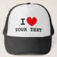 Eu adoro chapéu de caminhoneiro. Faça seu próprio boné divertido. Exemplos: coração burritos, vinho de coração, coração, etc. Personalize esta modelo com seu próprio texto engraçado.