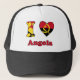 Mostre o seu amor e orgulho por Angola com este chapéu de camionista. A design apresenta um "I" ousado e uma bandeira angolana em forma de coração, simbolizando a admiração pela cultura e a herança do país. Este chapéu é perfeito para eventos culturais, jogos desportivos, viagem, ou simplesmente como uma matéria de moda. Com seu confortável ajustado e malhas para respirar, é adequado para o visto cotidiano e dá um presente pensativo para qualquer pessoa que tenha uma conexão com Angola.