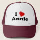 Eu amo Annie! É seu nome Annie? Você tem um marido, um namorado, um membro da família masculino ou um amigo do homem que você saiba amores você? Ou você tem uma esposa, um namorada, um membro da família fêmea ou um amigo fêmea nomeados Annie quem você ama profundamente? Em caso afirmativo, este "que eu amo" o chapéu é exatamente o presente que você está procurando! As características de design a letra "mim" na rotulação preta com um coração vermelho na parte superior e na "Annie" na rotulação preta na parte inferior.