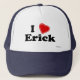 Eu amo Erick! É seu nome Erick? Você tem uma esposa, um namorada, um membro da família fêmea ou um amigo fêmea que você saiba amores você? Ou você tem um marido, um namorado, um membro da família masculino ou um homem Erick nomeado amigo quem você ame profundamente? Em caso afirmativo, este "que eu amo" o chapéu é exatamente o presente que você está procurando! As características de design a letra "mim" na rotulação preta com um coração vermelho na parte superior e no "Erick" na rotulação preta na parte inferior.