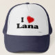 Eu amo Lana! É seu nome Lana? Você tem um marido, um namorado, um membro da família masculino ou um amigo do homem que você saiba amores você? Ou você tem uma esposa, um namorada, um membro da família fêmea ou um amigo fêmea nomeados Lana quem você ama profundamente? Em caso afirmativo, este "que eu amo" o chapéu é exatamente o presente que você está procurando! As características de design a letra "mim" na rotulação preta com um coração vermelho na parte superior e no "Lana" na rotulação preta na parte inferior.