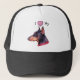 Eu amo (coração) meu chapéu do camionista do cão do Doberman. Preto considerável e cara do Pinscher do Doberman da oxidação. Clique sobre Customize para adicionar o texto. Contacte-me com todas as perguntas ou pedidos do design. Esta imagem está disponível em muitos produtos em minha loja. Visite por favor tesouros dos olhos de Smilin para mais flor, animal, e cartões e presentes da natureza.
