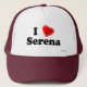 Eu amo Serena! É seu nome Serena? Você tem um marido, um namorado, um membro da família masculino ou um amigo do homem que você saiba amores você? Ou você tem uma esposa, um namorada, um membro da família fêmea ou um amigo fêmea nomeados Serena quem você ama profundamente? Em caso afirmativo, este "que eu amo" o chapéu é exatamente o presente que você está procurando! As características de design a letra "mim" na rotulação preta com um coração vermelho na parte superior e na "Serena" na rotulação preta na parte inferior.