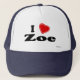 Eu amo Zoe! É seu nome Zoe? Você tem um marido, um namorado, um membro da família masculino ou um amigo do homem que você saiba amores você? Ou você tem uma esposa, um namorada, um membro da família fêmea ou um amigo fêmea nomeados Zoe quem você ama profundamente? Em caso afirmativo, este "que eu amo" o chapéu é exatamente o presente que você está procurando! As características de design a letra "mim" na rotulação preta com um coração vermelho na parte superior e no "Zoe" na rotulação preta na parte inferior.