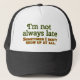 Isto lê, "mim não está sempre atrasado. Às vezes eu não apareço de todo." Para os procrastinadores sérios e aqueles que oversleep crônica.