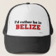 Eu preferencialmente estaria em Belize! É você de Belize? Você tem um amigo ou um membro da família que amem Belize? Em caso afirmativo, isto "eu preferencialmente estaria em…" o chapéu é o que você está procurando! As características de design "eu preferencialmente estaria em" na rotulação preta pequena na parte superior e no "Belize" na rotulação vermelha grande na parte inferior.