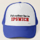 Eu preferencialmente estaria em Ipswich! É você de Ipswich, Reino Unido? Você tem um amigo ou um membro da família que amem Ipswich, Reino Unido? Em caso afirmativo, isto "eu preferencialmente estaria em…" o chapéu é o que você está procurando! As características de design "eu preferencialmente estaria em" na rotulação preta pequena na parte superior e no "Ipswich" na rotulação vermelha grande na parte inferior.