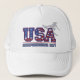Um surfista dirige a onda dos EUA com a bandeira americana para celebrar o Dia da Independência.