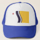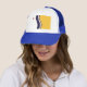 Chapéu com design com a bandeira de South Bend, Indiana. Uma bandeira branca, azul e amarela com uma estrela vermelha