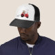 Fazendeiro feliz dos desenhos animados que conduz um trator vermelho
