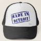 Feito em Detroit! É você de Detroit, Michigan? Você tem um amigo ou um membro da família que amem Detroit, Michigan? Em caso afirmativo, isto "feito em…" o chapéu é exatamente o presente que você está procurando! Das características de design resistido "feito em Detroit" no marinho estêncil-como a rotulação cercada por um marinho arredondou o retângulo.
