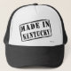 Feito em Kentucky! É você de Kentucky? Você tem um amigo ou um membro da família que amem Kentucky? Em caso afirmativo, isto "feito em…" o chapéu é exatamente o presente que você está procurando! As características que de design resistido "feito em Kentucky" no preto estêncil-como a rotulação cercou por um retângulo arredondado preto.