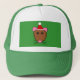 Este chapéu espetacular apresenta uma caricatura engraçada de um rato de Natal com grandes olhos redondos, orelhas rosa, um nariz rosa pequeno e uísques giros. O rato está vestindo um chapéu de Papai Noel vermelho e branco pronto para o Natal.