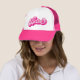 Crie seu próprio chapéu de caminhoneiro com tipografia rosa quente e rosa "Babe" estilo retrô para sua festa de despedida de solteira.