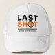 Celebre o último tiro do noivo antes do casamento com este chapéu de festa de despedida de solteiro temático de basquete. Projetado com uma paleta de cores laranja, preta e branca, este design divertido e esportivo é perfeito para uma noite de rapazes ou fim de semana de despedida de solteiro. Ótimo para o noivo e seus amigos, este chapéu adiciona um toque divertido à celebração. Personalize com o nome do noivo e detalhes do evento para uma lembrança personalizada!