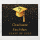 Classe de 2025. Para uma celebração moderna e moderna de graduação. Um fundo preto chic com confete de ouro. Personalize e adicione um nome e ano. Decorado com um abstrato moderno boné de ouro falso, tassel topper. Para ele e para ela.