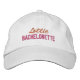 Gorra de beisebol com nome em vermelho e descrição de "Noiva" em rosa bordada