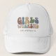 Abrace o espírito da viagem definitiva entre garotas com nosso Boné de Caminhoneiro de Tipografia Retro Personalizada para Fim de Semana de Despedida de Solteira! Este acessório retrô chique e elegante serve como um memento perfeito de uma escapada memorável com suas damas favoritas. A frente do boné exibe uma tipografia "Fim de Semana de Garotas" inspirada no vintage que captura perfeitamente a diversão e a camaradagem do seu fim de semana especial. A letra espiralada e as cores vibrantes transportam você de volta aos dias dourados, adicionando um charme nostálgico que combina bem com qualquer roupa.
