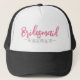 Gorro de caminhoneira para despedida de solteira com tema Praia Rosa. Um tema costeiro e náutico fresco e com aquarela, com tons de rosa e azul-turquesa, que define o clima para uma escapada à praia com a noiva e as amigas. De viagens para a Flórida, os Hamptons, Califórnia, ou mesmo algo mais internacional como México, Havaí ou Bahamas, esse fim de semana de garotas vai ser incrível! Conchas e estrelas-do-mar rosa e azul-turquesa em uma corda. Tudo sobre aquele clima tropical de praia relaxante. Com fontes modernas que adicionam um toque estiloso, é o visual perfeito para a despedida de solteira. Só você e sua turma, criando memórias contra um cenário de areia e mar. Confira também todas as peças coordenadas!