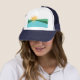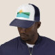 Trucker Hat com um design com a bandeira dos Primaveras Corais, Flórida. Uma bandeira branca, verde e azul com um sol ascensão amarelo