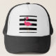Um flamingo cor-de-rosa em um fundo listrado preto e branco