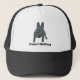 Mostre a ele o quanto você o aprecia esse Dia de os pais com este chapéu de um cachorro francês / cão francês da raça silhueta. Perfeito para todos os amantes de cães, este camionista que certamente vira cabeças. Personalize com o nome do pai ou do cão abaixo da forma da raça.
