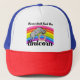 A ilustração engraçada de um unicórnio que é comido tanto é que agora parece um rinoceronte. Este Rinoceronte está comendo uma rosquinha num arco-íris.
