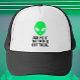 Embarque a curiosidade extraterrestre com este camionista cativante que apresenta uma cabeça de alienígena verde impressionante. Bolosamente gravada com a frase "Pergunte-me se a verdade está lá fora", ela incendeia a conversa e convida à exploração dos mistérios do universo. Perfeito para crentes e céticos, este chapéu combina estilo com senso de admiração, fazer ele um acessório obrigatório para entusiastas de OVNI e aficionados de ficção científica. Elevem seu guarda-roupa com um toque de intriga cósmica e juntem-se à busca de respostas com cada veste.