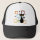 Ilustração colorida do estilo do Meio século abstrato com gato preto, estrelas pretas e ornamentação colorida em fundo branco. Você pode adicionar seu nome/monograma para personalizar o item.